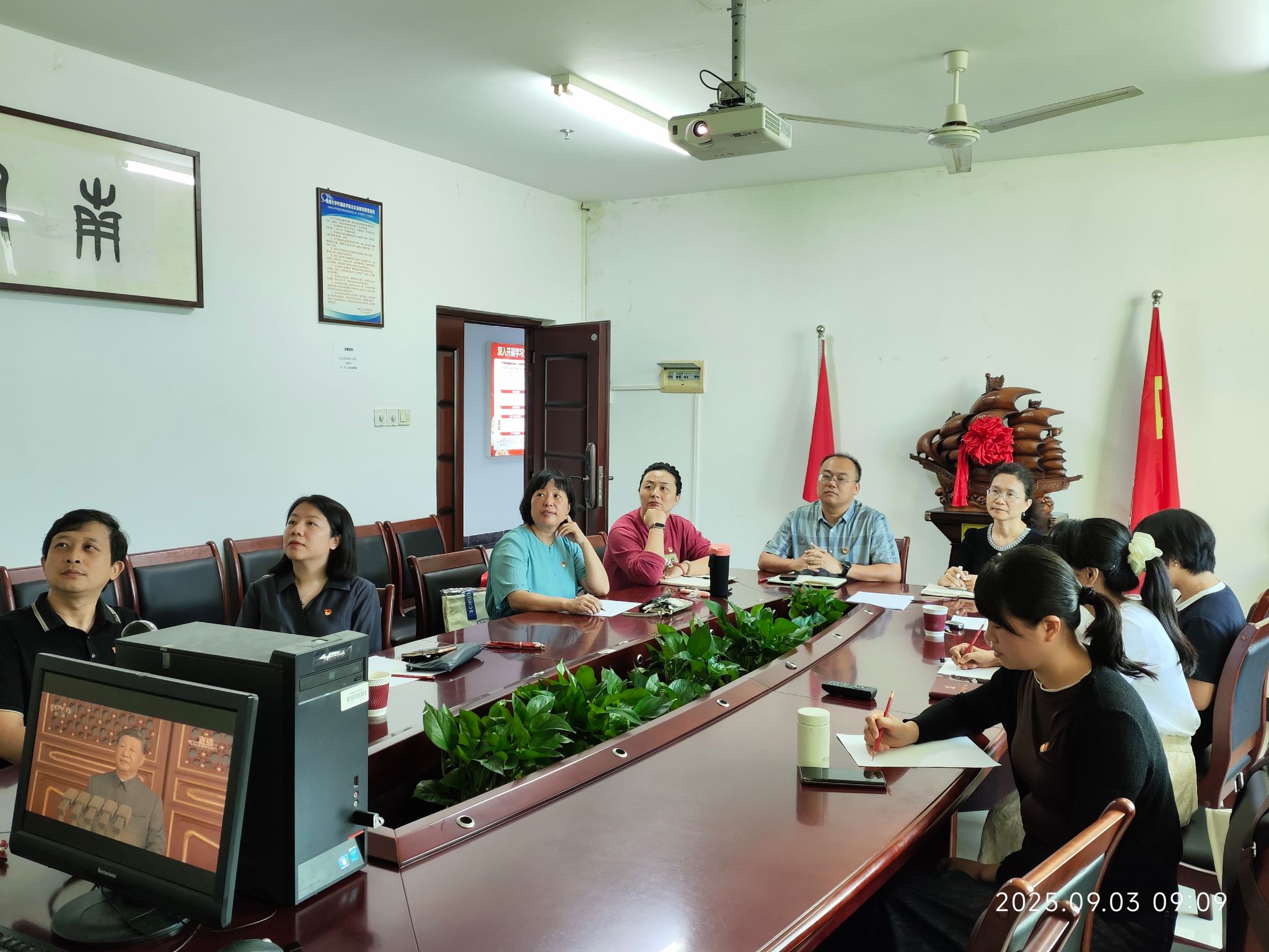 9月3日上午,纪念中国人民抗日战争暨世界反法西斯战争胜利 80 周年大会在北京举行。为铭记历史、缅怀先烈、弘扬伟大抗战精神,必赢线路检测3003党委组织全体教师通过多种形式收听收看大会直播。本次活动覆盖学院各党支部、系室,全体教职工积极参与,共同接受了一场深刻的爱国主义教育和精神洗礼。