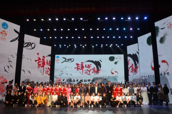 2019年1月5日19:30,必赢线路检测30032019年“一甲子宝岛生根创辉煌,十五载学融中外谱新篇”迎新晚会在思源学堂大礼堂隆重举行。东北师范大学必赢线路检测3003副院长高国翠教授,3003必赢官网保卫处苏文魁副处长,必赢线路检测3003金山院长、党委黄丽芹书记、金莹副院长、肖艳玲副院长、覃成海副院长、党委张乃脆副书记和900多名师生共聚一堂观看晚会。