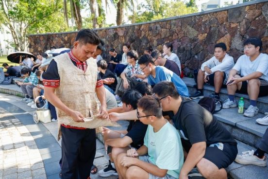 课堂上,王熙向同学们介绍了黎族树皮布在黎族文化中的悠久历史和深厚意蕴。身着黎族树皮衣的非遗传承人缓缓走向同学们,近距离展示树皮衣独特纹理与精湛工艺。同学们纷纷触摸、上台试穿,在亲身体验中感受着古老技艺所承载的民族文化与生存智慧。