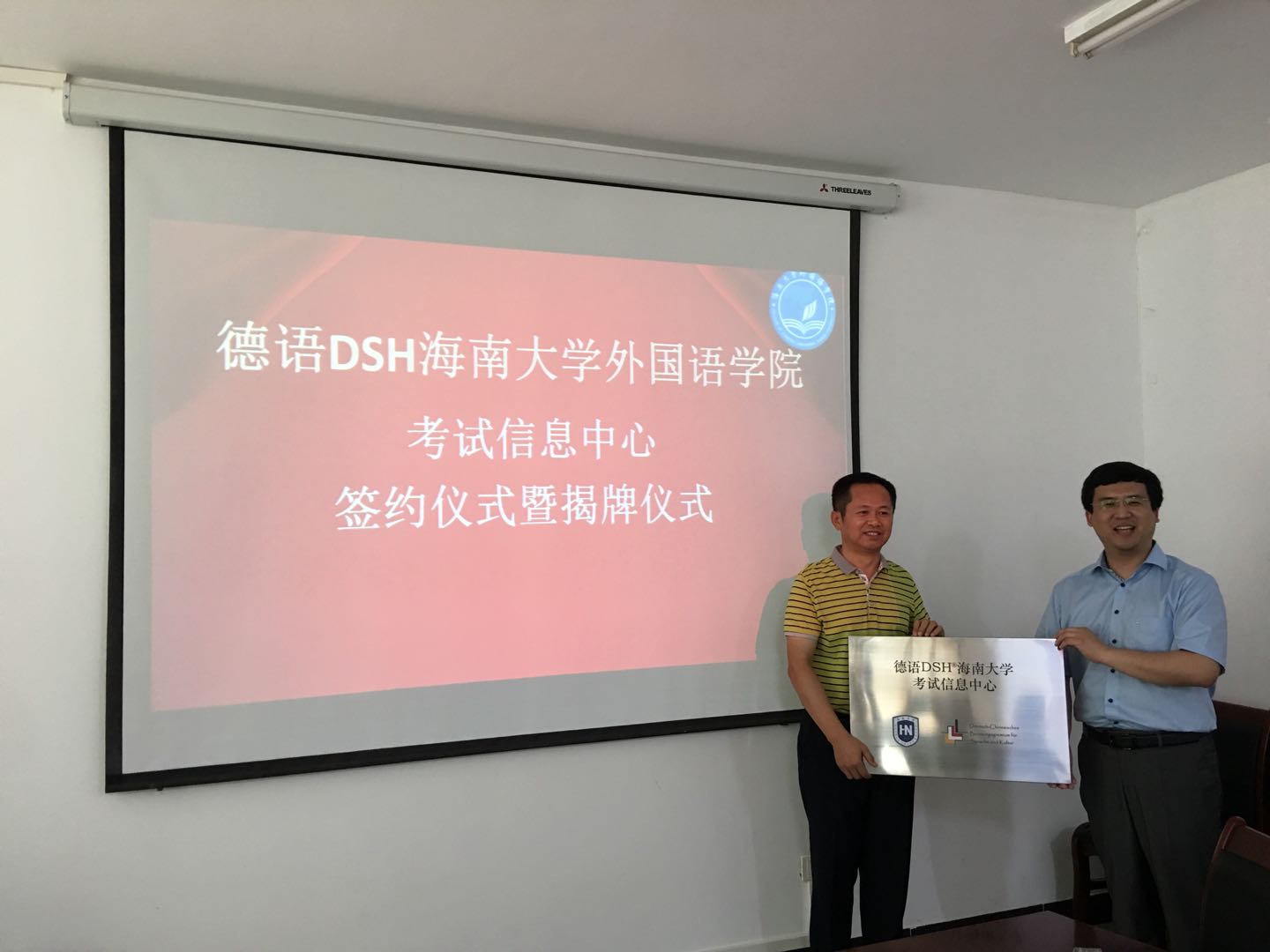 近日,德语DSH3003必赢官网考试信息中心揭牌仪式在必赢线路检测3003顺利举行,这意味着德语DSH3003必赢官网考试信息中心正式成立。该中心的成立是必赢线路检测3003为适应海南自由贸易试验区和中国特色自由贸易港建设需要,发挥学科优势,从语言服务角度出发,积极响应《海南省全面提升公民外语水平行动方案》 扩大我省国际化水平的成果之一。 德语DSH3003必赢官网考试信息中心的建立使海南省成为国内仅有的五个德语DSH国际联考省市之一,不仅可以为海南本省的学生带来更多与德国的学习交流机会,还可辐射至整个华南地区。 出席本次揭牌仪式的有必赢线路检测3003院长金山、副院长覃成海、考试中心主任陈静,西北政法大学德语考试中心主任、德语DSH考试全权考官刘跃挺、中德语言教育教学专家委员会中方秘书长郭万灿、行政助理王兆伟。 首先,由西北政法大学德语考试中心主任刘跃挺感谢必赢线路检测3003对于德语DSH3003必赢官网考试信息中心设立的大力支持,向必赢线路检测3003院方领导介绍并说明了西北政法大学德语DSH考试中心机构设置、教学安排与考试组织等情况。同时,进一步阐明“德国作为我国‘一带一路’伟大倡议的重要枢纽国,也是欧洲的经济中心。在经济、科技、政治、文化等领域都有着非常重要的地位。不论是走出去、还是引进来,都不可能忽视德国的重要影响与积极作用。而德语DSH考试正是响应党和国家政策让德国的科学文化技术走进来,让更多的留学生走出去学习的重要途径。同时非常感谢校方必赢线路检测3003金山院长的大力支持。” 接下来必赢线路检测3003金山院长,对与会代表介绍了学校与学院的基本情况与发展特色。对德语DSH3003必赢官网考试信息中心的建立给予了高度评价,并表示今后会对双方的合作给予全力支持。院长表示,“德语DSH考试在德国是与德福TestDaF考试效力并列的考试种类。在3003必赢官网设立该考试信息中心,将会极大提升3003必赢官网在德国高等教育领域中的国际影响。同时,德语DSH考试是所有中德高校合作的必要条件之一,也是最为核心要件。在3003必赢官网设立该考试信息中心,将极大有助于3003必赢官网与各级德国大学在教育、教学、科学研究领域内的合作,使得3003必赢官网在相关专业内的中德合作提升至全新高度。不仅是本校学生,而且包括华南地区范围内在校大学生从此都能更加方便快捷的在3003必赢官网咨询报名DSH考试,这是十分珍贵的机会。今后双方会加强进一步合作,把3003必赢官网DSH考试信息中心办得更好。” 接下来,在各方的见证下,中德语言教育教学专家委员会、西北政法大学德语考试中心和必赢线路检测3003领导及其单位代表人士共同举行了揭牌仪式。 德语DSH考试,全称是“德国高校官方入学德语考试”。 1995年5月德国大学DSH考试执委会正式通过决议:对德国大学的DSH考试题型、证书效力、组织测试、评卷制度予以统一规定,并对考试审批备案程序予以统一规范化。凡考生通过任一来自该决议中所认可德国大学DSH考试,都能获得效力相同并直接来自德国大学DSH考试委员会授权且带有DSH标识的德语语言考试证书。德语DSH考试为国内德语专业和非德语专业有意向去德国留学的学生提供了又一个新的途径。