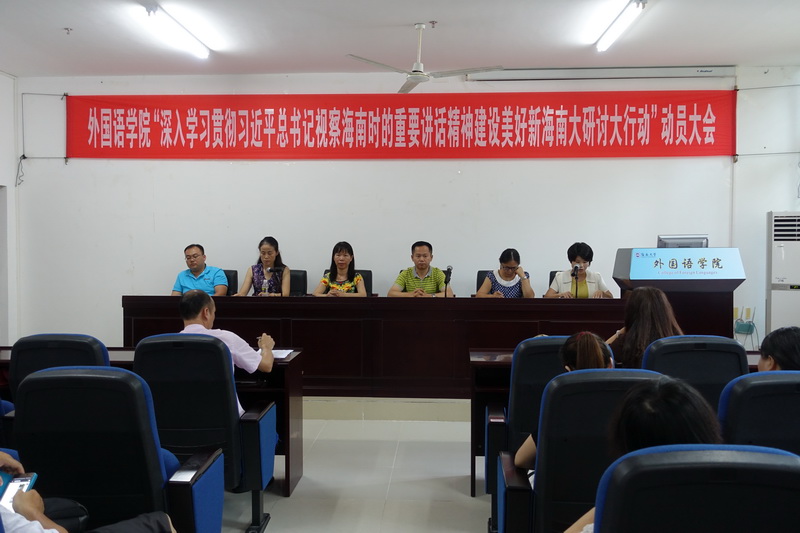 学院党委黄丽芹书记重点传达学校“大研讨大行动”活动动员大会精神,传达学习了校党委武耀廷书记在学校“大研讨大行动”活动动员大会上讲话的主要精神和李建保校长提出的三点工作要求。带领全院教职工学习了习近平总书记2013年4月考察海南纪实和教育部等五部委《关于深化高等教育领域简政放权放管结合优化服务改革的若干意见》内容。就学院“大研讨大行动”活动作出部署,强调全体教职工要统一思想认识、深刻领会开展“大研讨大行动”的重要意义,积极参与到大研讨大行动中来,要求各党支部、各系室要结合学校学院相关文件精神,对标省委“十个方面”的问题,对照我们的各项工作,结合专业优势,开展好大研讨大行动,积极为海南经济社会发展建言献策。