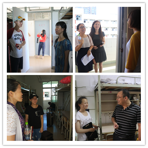 迎新期间,由学院党委黄丽芹书记、金莹副院长、白丽芳副院长、肖艳玲副院长、覃成海副院长组成的学院领导小组在学工办罗国忠老师、刘颖敏老师、刘宇欢老师、陈盼老师和17级新生辅导员吴剑锋老师、张红运老师的陪同下一起考察、慰问并走访新生宿舍,了解新生入校情况,鼓励新生安心学习,以优良的精神状态开启大学生活。