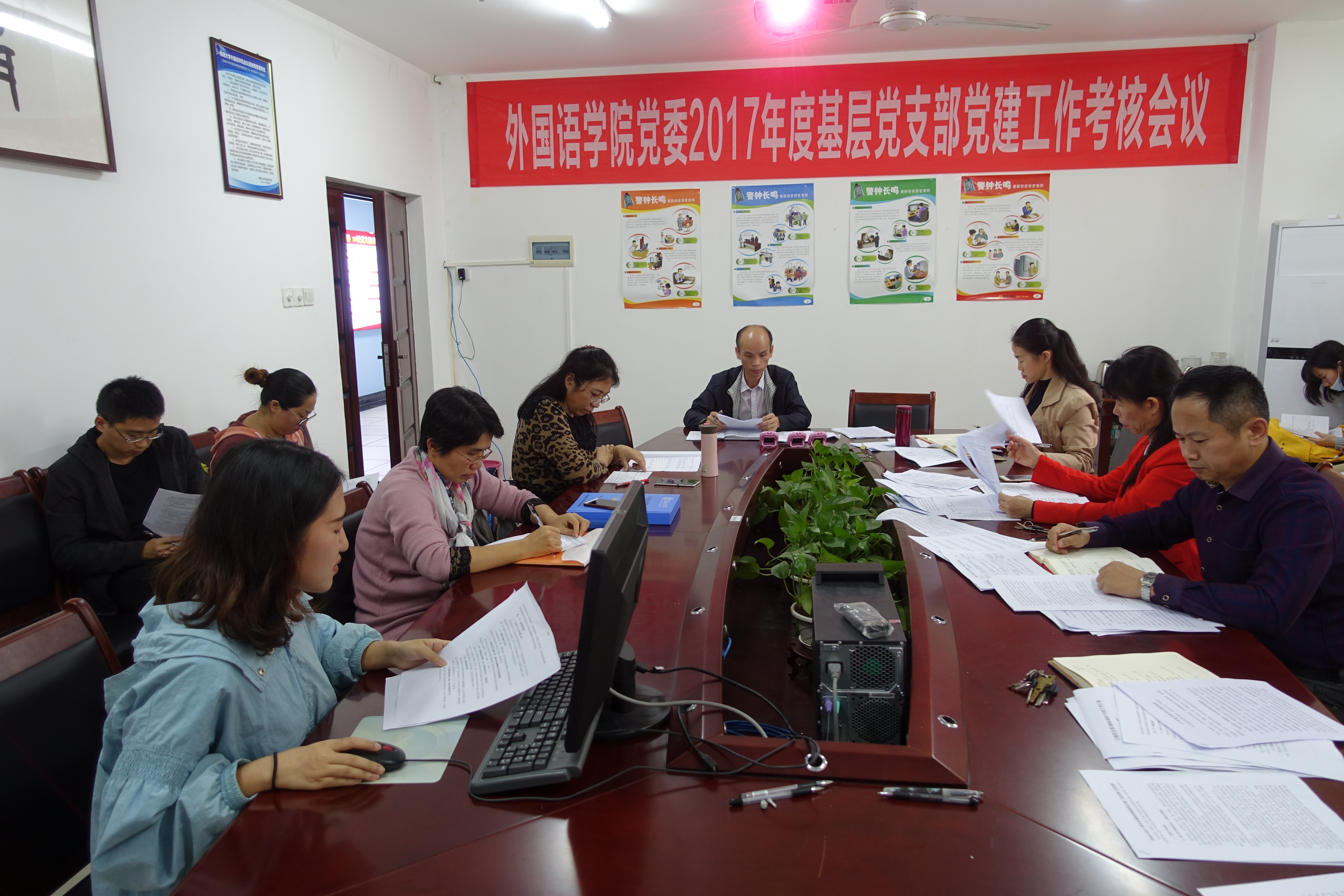 2017年 11月28日下午,必赢线路检测3003党委在社科楼C312会议室召开2017年度基层党支部述职考核工作会。学院党委书记黄丽芹、党委委员金山院长、党委委员肖艳玲副院长、副院长白丽芳等学院领导干部,党委委员、党务工作联系人符壮慈,党委委员李芬,各党支部书记、支部委员参加了会议,共有10个基层党支部参加述职考核。会议由黄丽芹主持。