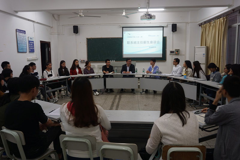 11月28日,为践行十九大精神,深入一线了解学生的需求与困难,学校党委常委、副校长梁谋以联系班主任的身份同必赢线路检测30032017级日语二班全体同学召开新生座谈会。座谈会在城西校区教学楼举行,校办徐望来老师,班主任李明玲老师,辅导员吴剑锋老师一同参加了座谈会。