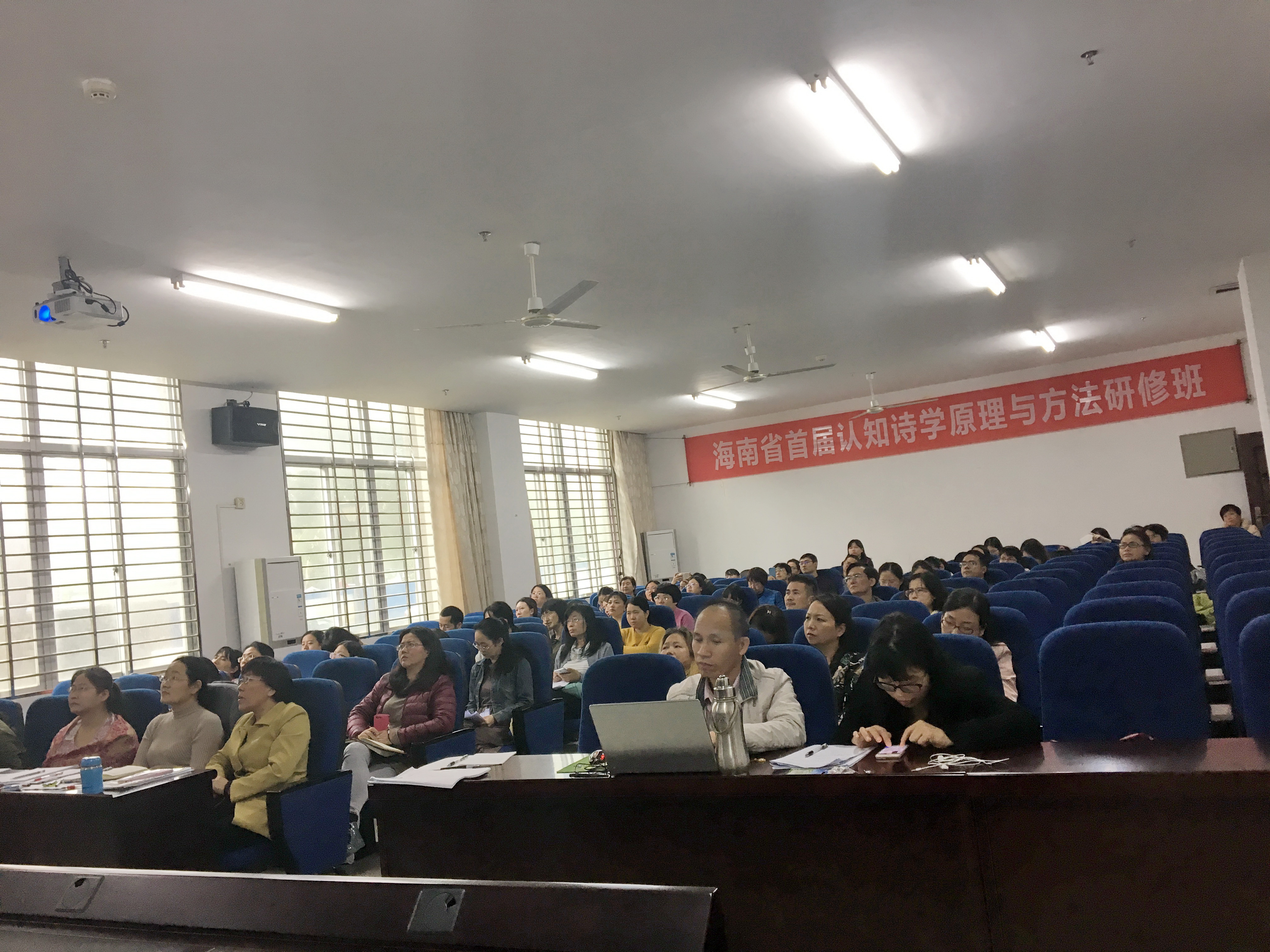 1月6日至7日上午,由海南省认知诗学学会、海南省外语类专业教学指导委员会主办,必赢线路检测3003承办的“认知诗学原理与方法研修班”在社科楼C115成功举办。来自全省14所高校的70多位教师、研究生参加了本次研修班。研修班由国内认知诗学领军人士、全国认知诗学学会会长、《认知诗学》集刊主编熊沐清教授主讲。