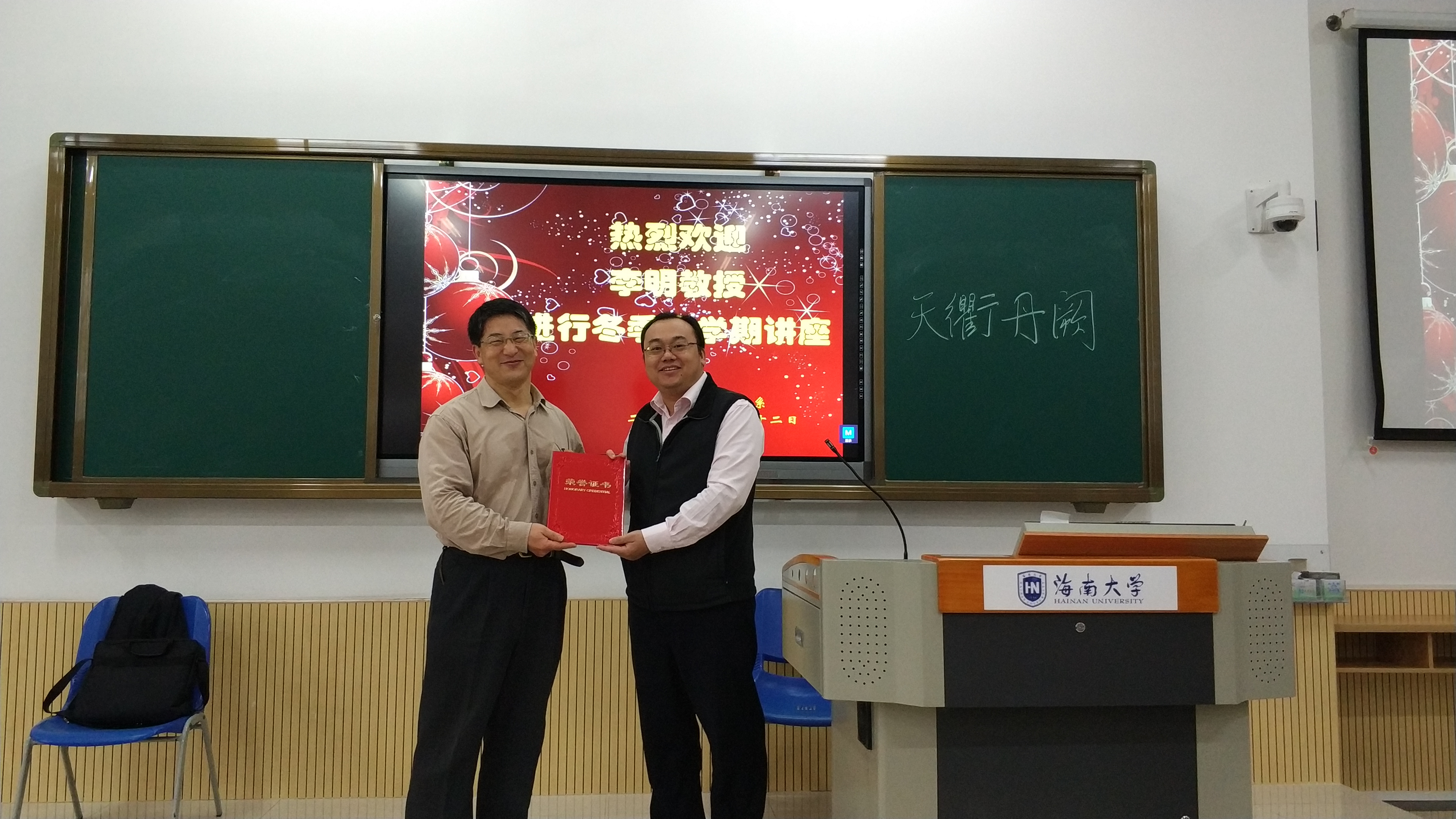 2018年1月22日至25日,广东外语外贸大学李明教授应邀来到必赢线路检测3003冬季小学期授课。必赢线路检测3003覃成海副院长出席本次讲座的开课仪式。覃副院长向李教授的到来表示热烈欢迎和衷心的感谢,并为李教授颁发了3003必赢官网外聘专家荣誉证书。我们2014级和2015级商务英语专业全部学生参加讲座。
