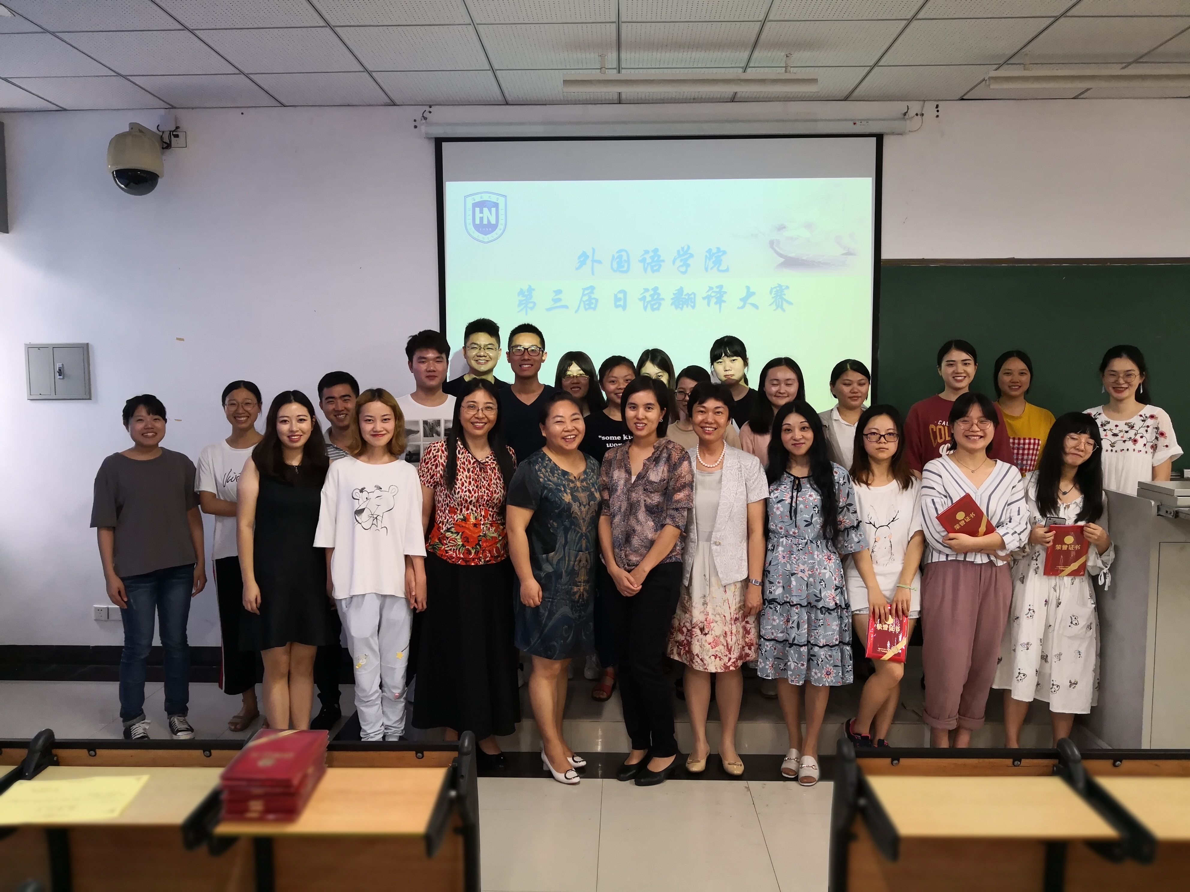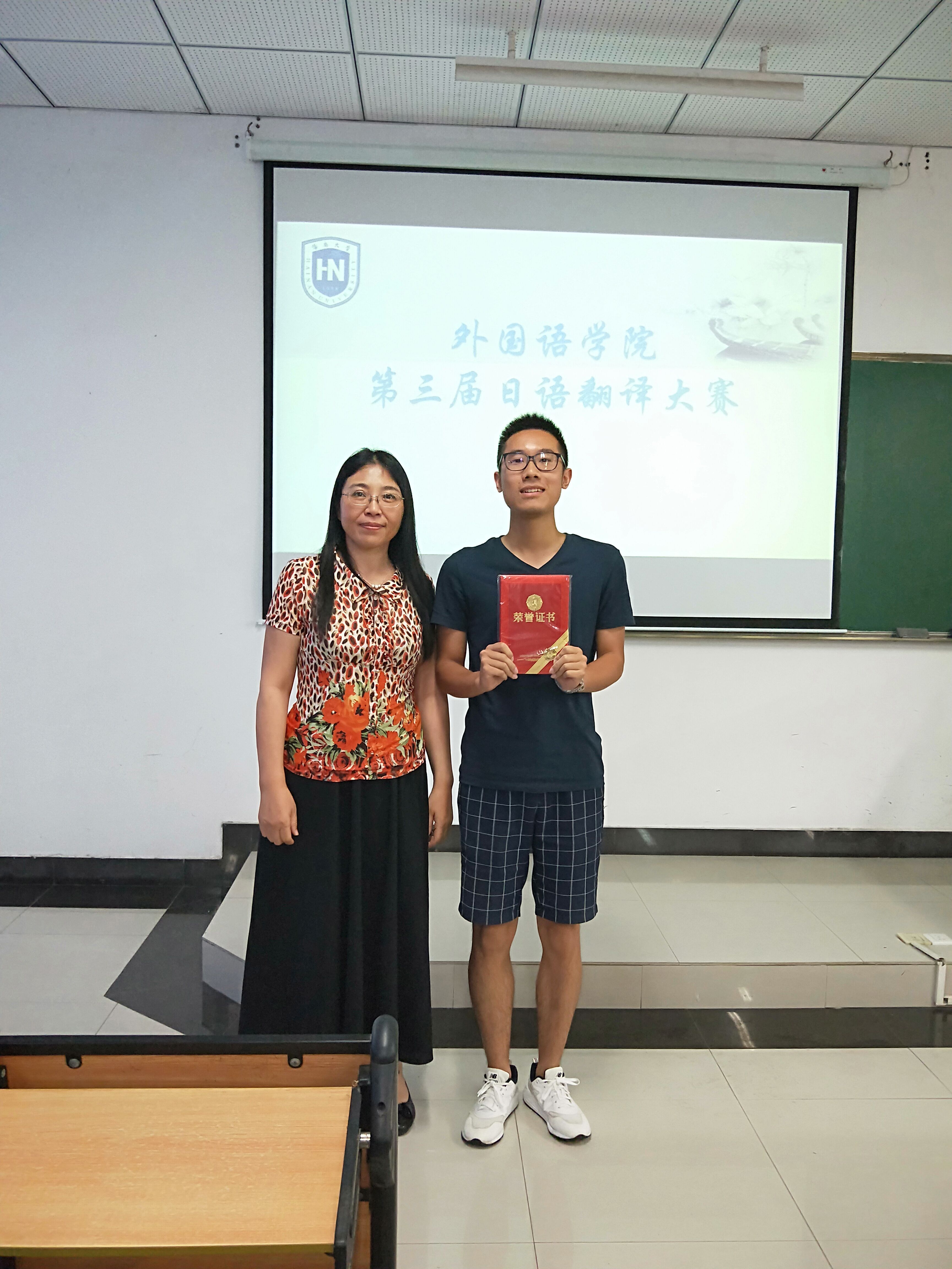 本次选拔赛包括日译汉及汉译日两部分,时间共计30分钟,比赛允许携带纸质词典,但禁止使用手机、电子词典等电子工具。评委根据大屏幕投影呈现的学生试卷答案现场打分,有效确保了比赛的公开、公平和公正。经过角逐,2016级章显宗同学以贴切的翻译、流畅的表达摘得本次比赛桂冠,熊文瑄、刘宸虎、吴宇轩三名同学荣获二等奖,钱晶晶、胡湘若、张满满、刘蕾四名同学荣获三等奖。比赛结束后,日语系主任李明玲老师给获奖选手颁奖并致闭幕词,本次比赛活跃了学生思维、提高了学生的翻译实践能力,为外院学子展现学习成果搭建了有效平台。