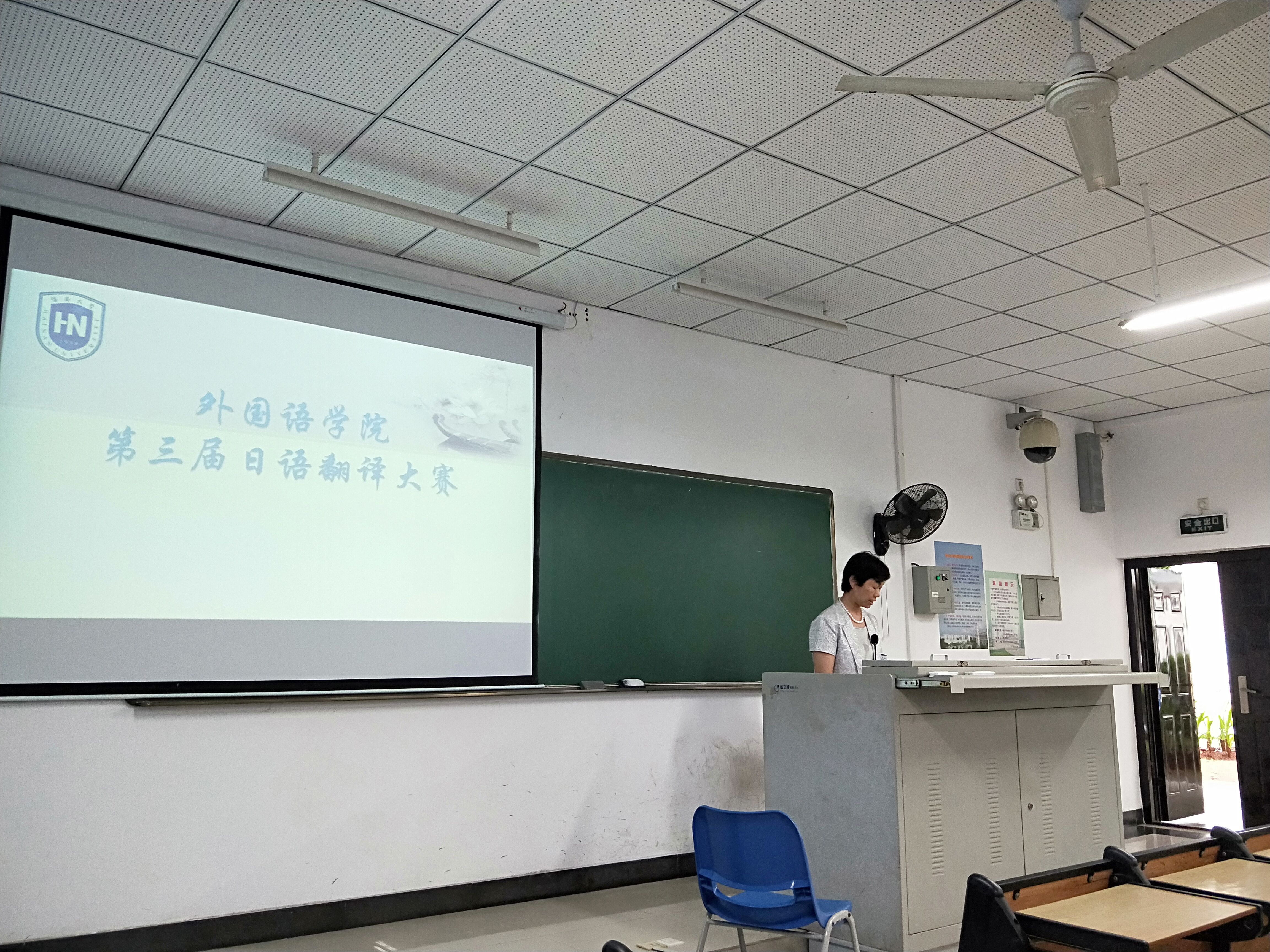 2018年4月24日下午,必赢线路检测3003在5教104教室成功举办第三届日语翻译大赛暨“第十三届海南省大学生翻译大赛”选拔赛。选拔赛采用学生自愿报名的形式,2015级和2016级日语专业共有24位同学参赛,赛事评委由日语系教师担任。