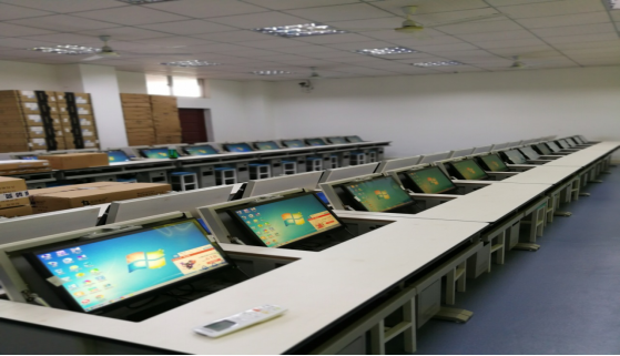 验收工作小组依次对位于10号教学楼四楼5间数字化语音室、五楼的四六级口语考场和社科楼C517室的商务英语实训实验室进行了现场查验。验收工作分为实地查验使用设备、现场测试和问答等几个环节。各位验收组成员仔细对照招标采购合同清单清点核对所购设备是否到位、对产品的技术性能进行测试核对是否达到采购合同中的要求,同时对设备的使用维护和后续质保等问题现场向施工负责人进行提问。