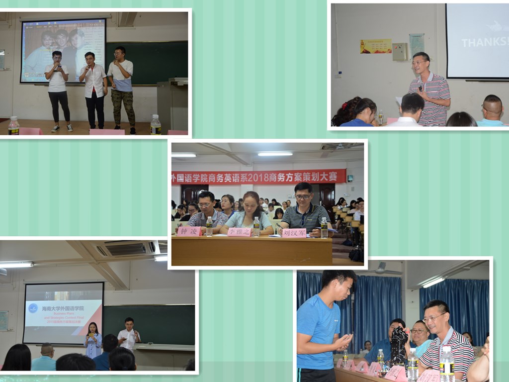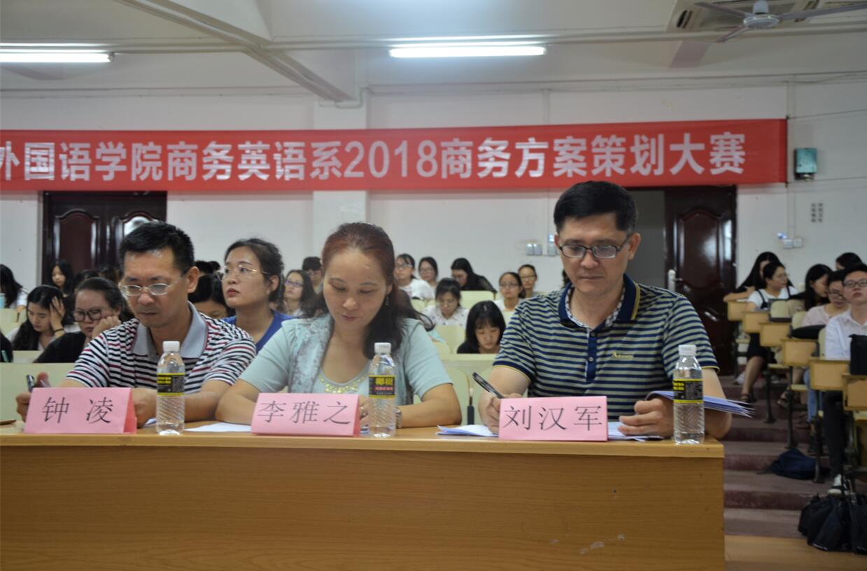 6月26日晚,商英系在2号教学楼109教室举办商务英语2018 “商务方案策划”决赛。商英系主任钟凌、刘汉军老师、李雅之老师、学院团委书记罗国忠担任此次决赛的评委。学院党委副书记张乃脆和2015级全体同学全程观摩,为代表队加油助威。