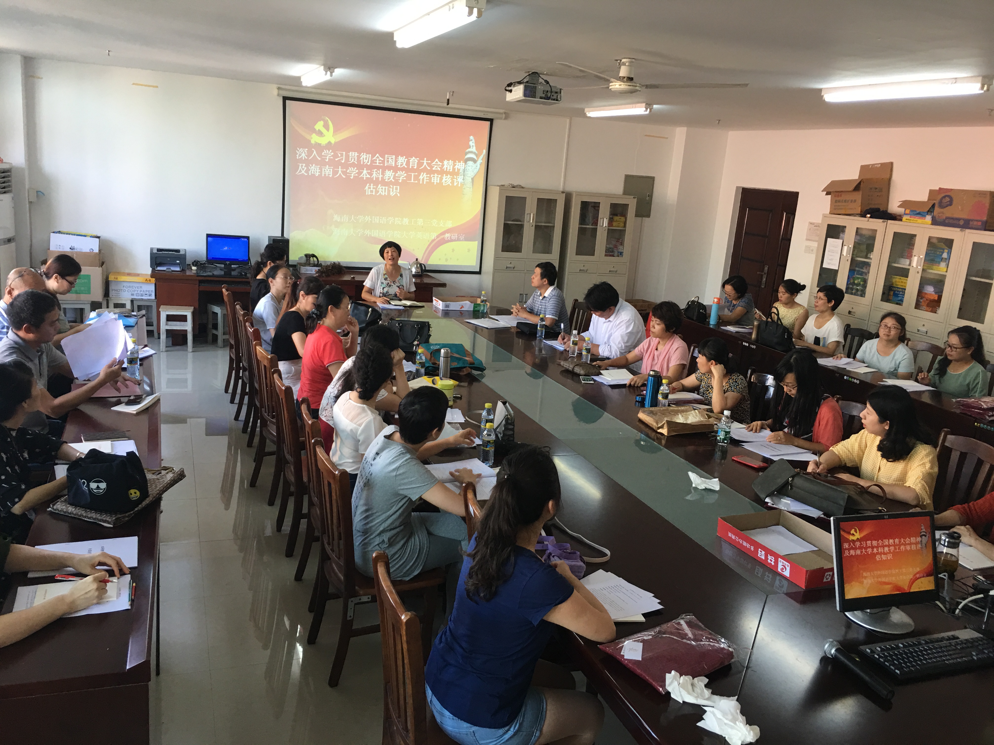 2018年11月20日,本科教学工作审核评估倒计时还有12天。在这紧张的冲刺阶段,大学英语第一教研室全体老师及教工第三党支部全体党员同志齐聚社科楼C-415,认真学习了学校和学院印发的《本科教学工作审核评估知识手册》和《必赢线路检测3003知识手册》,并重温了习近平总书记在全国教育大会上的重要讲话。学院党委副书记张乃脆同志出席会议并讲话。