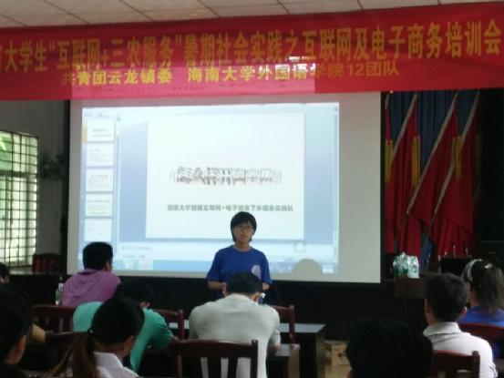 2015年海南省大学生“互联网+三农服务”社会实践活动是由团省委举办的,旨在通过大学生到各乡镇开展社会实践活动从而帮助农户加深对互联网+农业发展的认识,学会使用电商平台推广农产品的专项社会实践活动,活动的主要任务是:调研乡镇农村互联网+农业基础设施条件和主要农产品情况,为农户集中培训互联网、电子商务知识,帮助农户开设网店、微店,通过电商平台进行农产品营销。