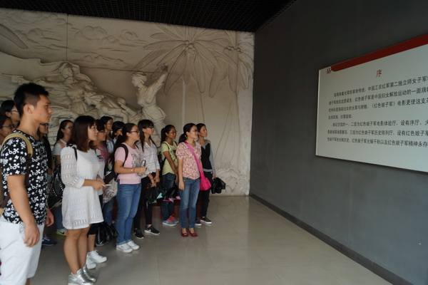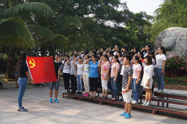 下午14时,全体人员到达琼海市红色娘子军纪念园。在鲜红的党旗面前庄严地重温了入党誓词。之后大家参观了和平广场、纪念广场和红色娘子军纪念馆和南府四部分,配以声、光、电和园雕,采用文物与景观、照片与影视、参观与参与相结合的展示方式,再现了红色娘子军们血与火的革命斗争历程以及可歌可泣的革命精神。同时大家还参观了水牢、大量珍贵照片和战争实物如飞机坦克等,这些定格的瞬间和实物,生动再现了她们艰苦朴素的生活,令前来瞻仰的人都不禁肃然起敬。