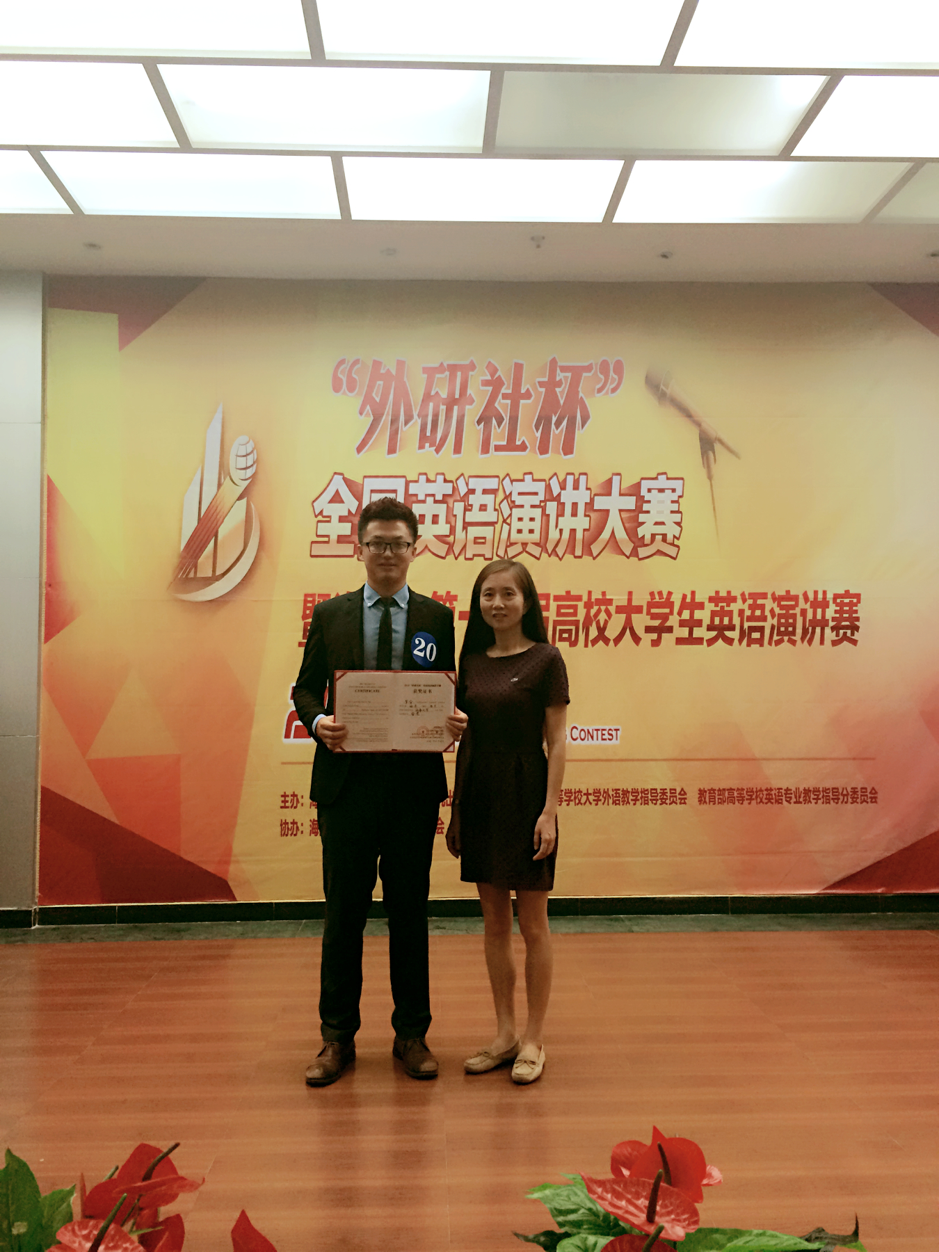 2015年10月23日上午八点, 2015“外研社杯”全国英语演讲大赛海南赛区复赛在海口经济学院学术报告厅隆重举行。我们MTI专业研究生罗金同学表现优异,获得特等奖!
