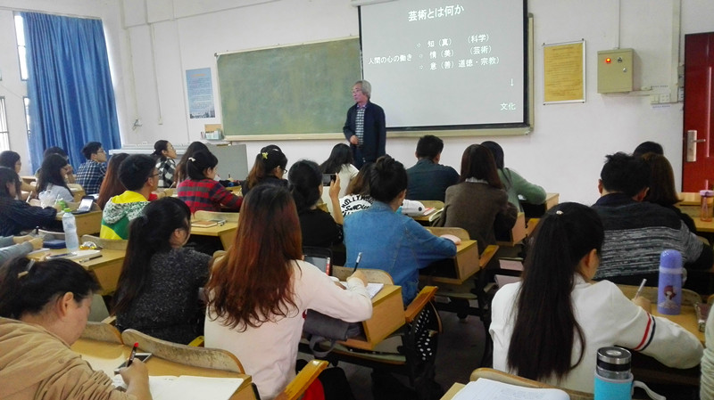 王教授首先向同学们介绍了艺术与文化的关系,由此引入文学课程。在为期4天的课程中,王教授选取了谷川俊太郎、大江健三郎、夏目簌石、芥川龙之介以及松尾芭蕉、紫式部等等日本文学史上著名作家的作品,以回溯日本文学的形式,通过作品分析、诗歌朗诵、短片欣赏、译文赏析等各种方式,将同学们引入了一个多姿多彩的文学艺术世界。