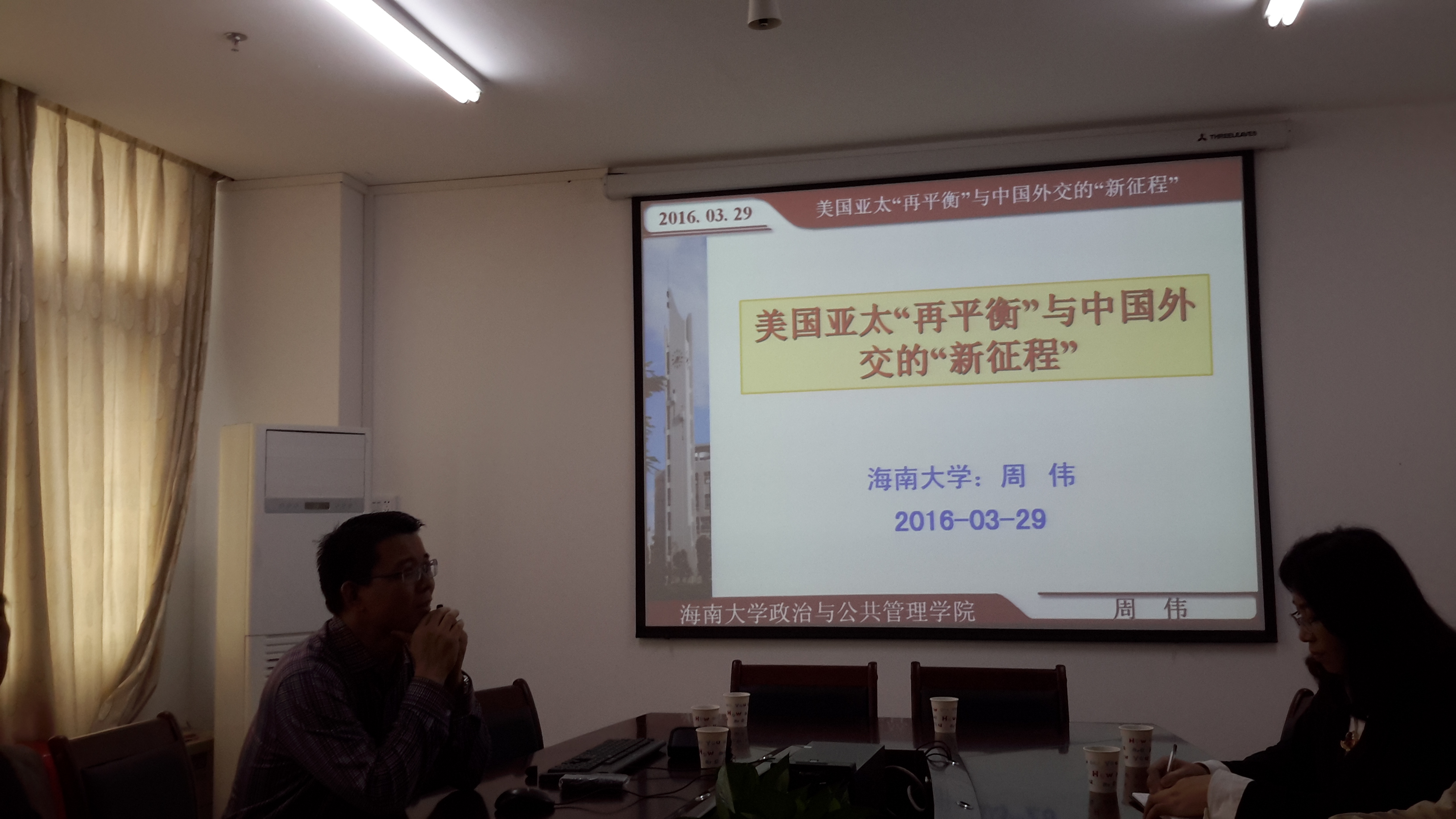 2016年3月29日下午,必赢线路检测3003在社科楼C312会议室举办主题为“美国亚太‘再平衡’与中国外交的‘新征程’”的“南冥坛席”第六场学术沙龙。本期沙龙由3003必赢官网政治与公共管理学院周伟博士主讲,必赢线路检测3003院长金山博士主持。众多国际关系爱好者喜闻,齐聚一堂。