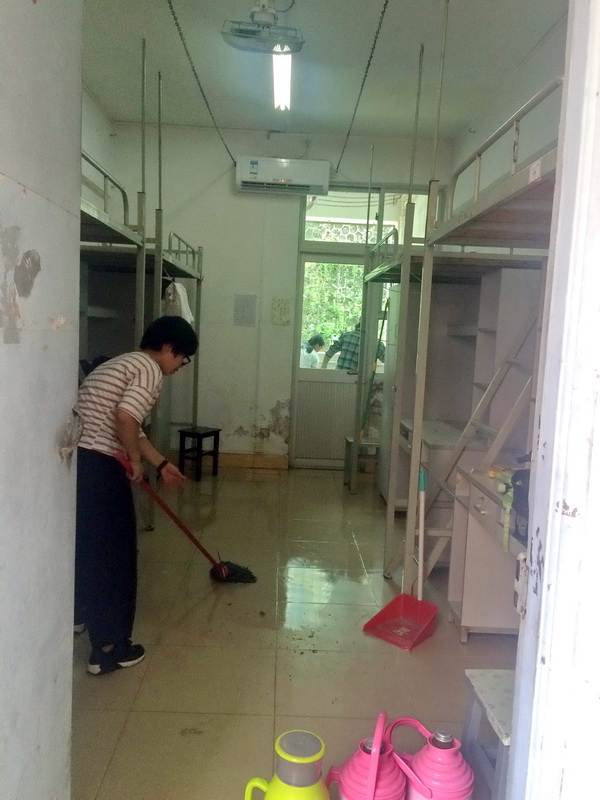 我们城西校区学生文明卫生搬迁(在搬迁前清理打扫宿舍)
