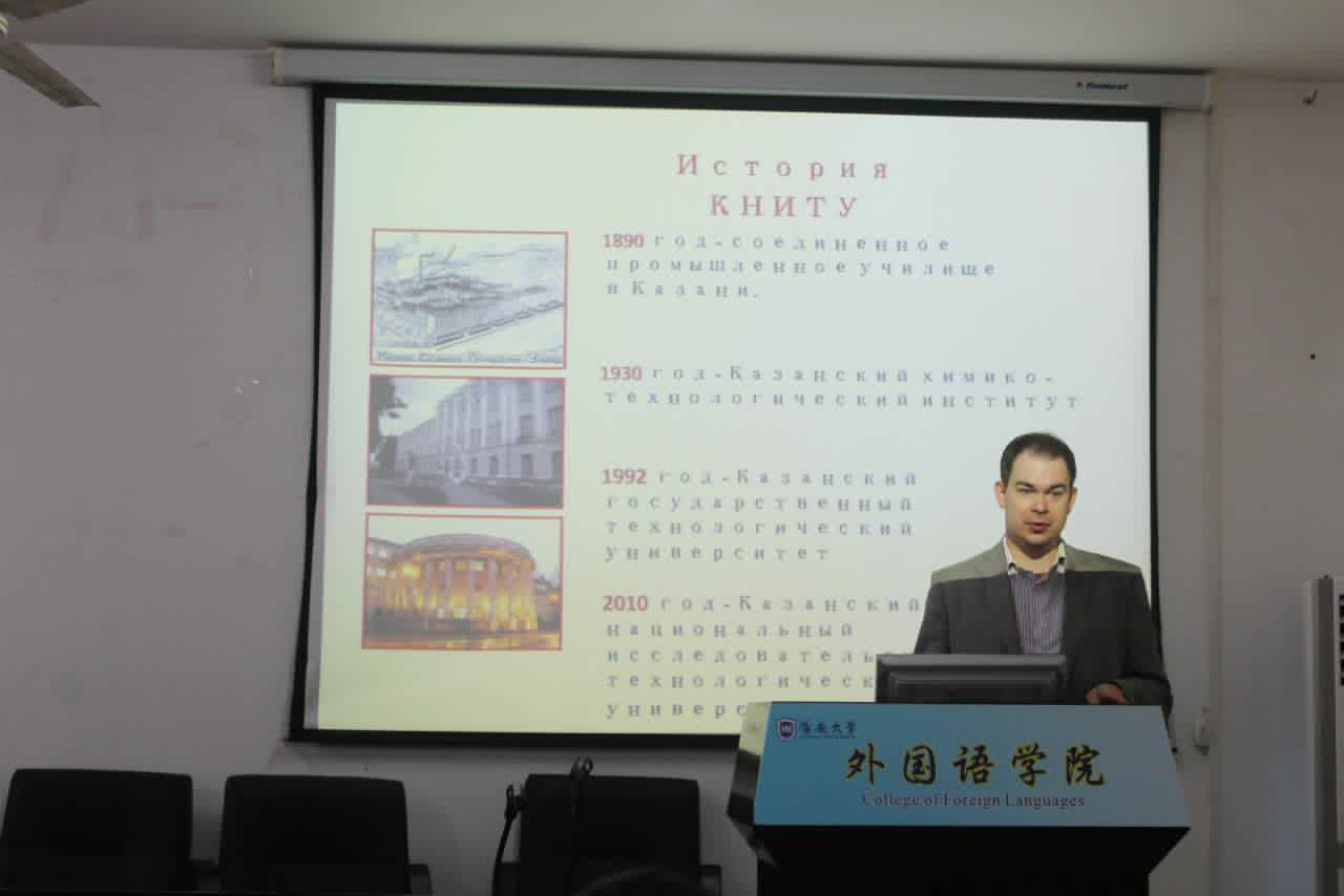 2016年11月16日上午在社科楼C115,俄罗斯喀山国立技术大学专家Артём Николаевич 应邀做客必赢线路检测3003俄语系,作了题为“喀山与俄罗斯”的讲座。俄语系主任吕卉老师和俄语系外教林诗音、林心语两位老师以及俄语系大二至大四全体同学参加了此次讲座。