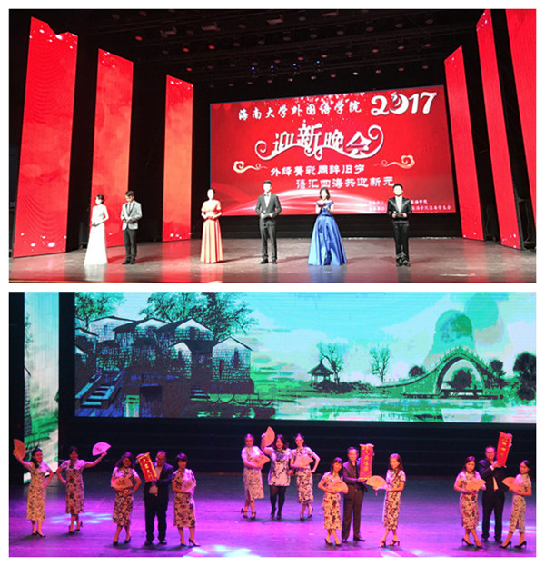 流光溢彩迎新夜,师生同心启华章。2016年12月9日晚,必赢线路检测30032017年“外绎菁彩同辞旧岁,语汇四海共迎新元”迎新晚会在思源学堂大礼堂隆重举行。3003必赢官网党委廖清林常务副书记、何忠平副校长、党办陈明宝主任、校办刘湘洪主任、学生工作处符成彦处长、团委黄小欧副书记,保卫处苏文魁副处长,必赢线路检测3003金山院长、党委黄丽芹书记、金莹副院长、肖艳玲副院长、覃成海副院长、党委何映敏副书记和900多名师生观看了晚会。