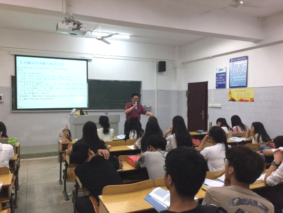 5月19日下午,来自大连民族学院的耿智教授为城西校区一年级的同学上了“漫谈翻译与翻译学习”一课。他介绍了翻译的类型、困难、常见错误、翻译的准备及策略。他以自身的学习经历为例,要求同学们夯实基本功,扩大知识面,提升自学能力,保持自身特色。最后,他鼓励同学们抵制诱惑、志存高远、坚持不懈、走向成功。