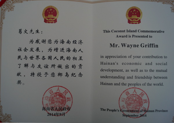 见到Wayne的时候,他温文尔雅、笑容可掬,刚刚结束了英语演讲课,很多学生还在与他交流着英语演讲方面的问题。在与Wayne的交谈过程中,Wayne表现的很谦虚,当问及他所获得的“椰岛奖”时,他更是强调道:“我只是一个老师,我只是做了一个老师应该做的。”他还表示,对于海南省为他颁发的“椰岛奖”他感到非常吃惊也非常骄傲,他只有通过不断的努力来回报这份荣誉。