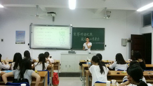专四成绩年级第一名的米珊珊同学向大家介绍了自己独特的学习方式,引发了大家对如何最大程度学好英语发挥专业优势的思考;杨文同学则从自身创业经历出发,讲述了发现自己的兴趣所在并坚持下去的重要性,幽默的语言让同学们在欢笑声中体会到了踏实肯干才是成功的基石;学习委员牟佳星则向大家推荐了一本书——《大学应该读什么》,鼓励大家在大学阶段多思考积极参加各种活动,全方面多角度提高自身实力。在三位同学的带动下,全班同学踊跃发言,各抒己见,畅谈自己对大学生社会竞争力的理解。许多同学认为,大学生社会竞争力最基本的是学习能力,学习能力包括学习专业知识和专业技能的能力,同时根据个人的优势和不足,培养和提高包括人际交往、文化感知、身心健康等方面的综合素质和能力。有的同学则认为大学生的社会竞争力是一种创新能力,创新是一切事物发展进步的源泉。