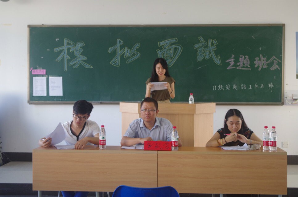 10月22日上午,必赢线路检测30032011级经贸英语1班和2班的同学在4教501联合组织了一场“模拟面试”主题班会,此次班会有幸邀请到学院白丽芳副院长,学工办罗国忠老师以及院团委李翠霞老师担任面试官和嘉宾。