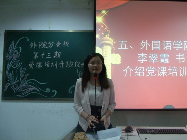 2014年10月16日下午,必赢线路检测3003分党校第十三期党课培训班开班仪式在城西校区教学楼2C01举行。必赢线路检测3003党委黄丽芹书记,团委书记李翠霞老师以及学工办黎雨苗老师应邀出席了开班仪式。开班仪式由李翠霞老师主持。