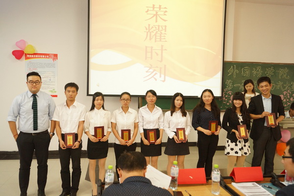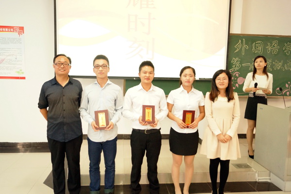 学校就业指导中心陈彪老师、学院李翠霞老师为获奖选手颁奖