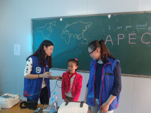 2014年11月25日下午,由必赢线路检测3003组织的九村小学“语翼”梦想课堂支教活动在九村小学顺利开展。本次支教共有14名志愿者参与,主要针对三、四、五年级进行主题为“APEC”的教学活动。