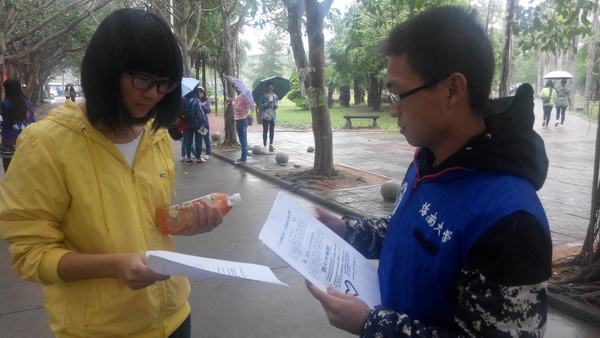 志愿者向同学们发放宣传资料