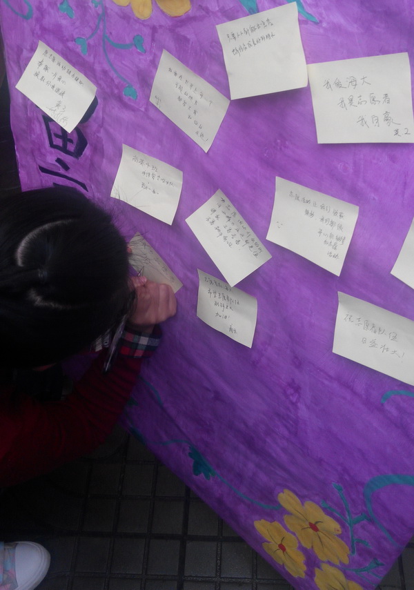 同学们在留言墙上留言