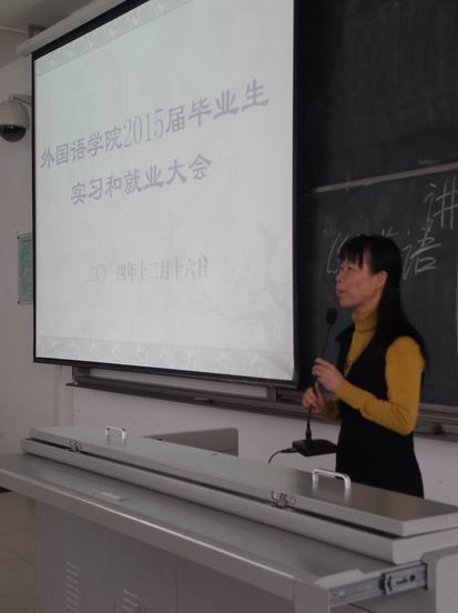 2014年12月9日和16日,必赢线路检测3003在3教310课室,分别召开了商务英语、日语、俄语和英语、英语(经贸英语方向)两场实习与就业工作安排会。学院党委书记黄丽芹、常务副院长金莹、副院长彭晓华、副书记何映敏、商务英语系主任李雅芝、学院团委书记李翠霞等出席了会议,全体2015届本科毕业生近500人参加了会议,学工办罗国忠老师主持了安排会。