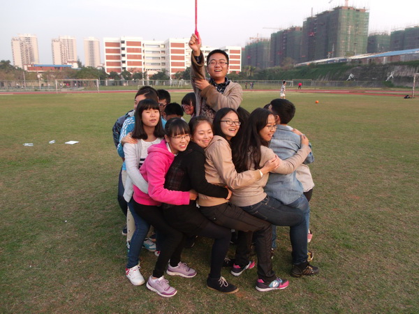 活动的最后一项是“人椅”,这是一项最艰难却又最能体现团队精神的活动。游戏开始时同学们一脸轻松的表情,时间一长,同学们腿部纷纷开始酸痛,有些团队坚持不下来很快就失败了;有些团队的队员则满脸通红地咬牙坚持,在周围同学和老师的鼓励下,撑到了最后。团结合作、拼搏向上的精神在同学们坚定的眼神和晶莹的汗水中得到了最好的诠释。