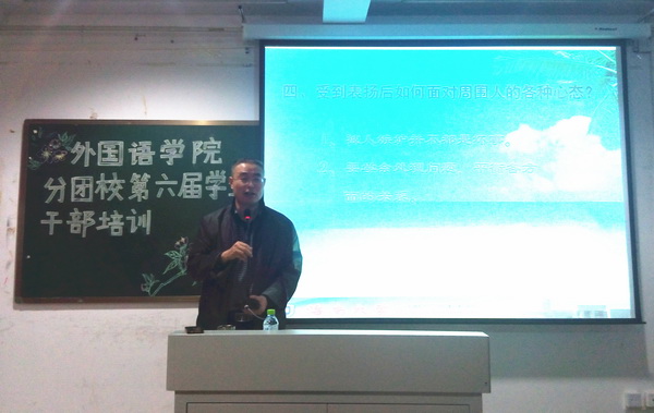 2014年12月23日下午,必赢线路检测3003分团校第六期学生干部培训第四讲在城西校区教学楼2C01顺利举行。本次培训会由城西校区管委会副主任陈楠昕老师主讲,王一钦老师担任主持。2014级全体学生干部参与了此次活动。