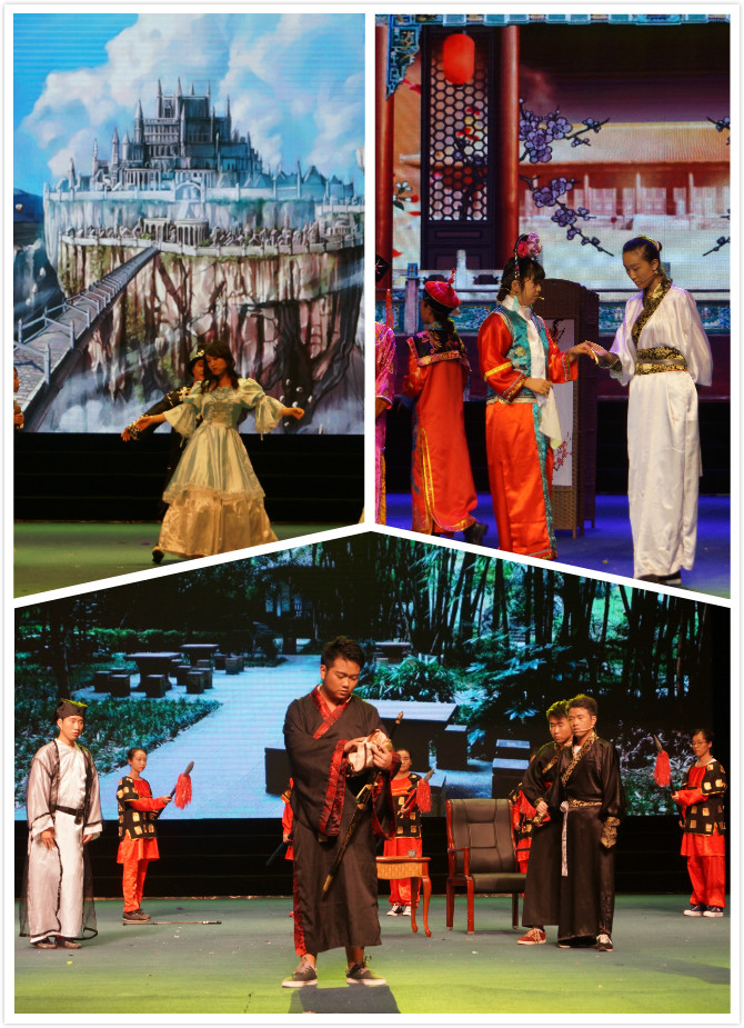 话剧大赛是必赢线路检测3003深受学生喜爱的特色赛事,通过话剧表演的形式将专业学习、能力运用和表演表达的有效结合,既检验了学生专业学习的成果,也极大激发了同学们的学习兴趣,提升学生的综合素质,增强学生的社会竞争力。本次的话剧大赛表演形式新颖,内容丰富,主题积极向上。既有中外经典名著、唯美童话,也有永恒的爱情主题经典;既有童话剧,古装剧,也有现代剧;既有让人捧腹不禁的喜剧,也有催人泪下的悲剧。晚会在英语话剧社带来的暖场话剧《婚礼前的教堂大厅》之后正式拉开帷幕,演员们精彩的表演以及流利的口语博得了现场阵阵掌声,此次话剧大赛共有8个班级进入决赛。加入了幽默元素改编的英语话剧《灰姑娘》以及带有童话魅影的《爱丽丝梦游仙境》赢得了观众的阵阵掌声;用日语演绎的话剧《梅花烙》为大家上演了一部感人至深的琼瑶爱情故事,剧中角色形象各异,特色鲜明令在场的观众无不深受感染;用俄语演绎《世界上的女人都在想什么》赢得了满堂喝彩,演员们表情丰富,表演极具表现力和感染力,掌声此起彼伏;喜剧《仲夏夜之梦》淋漓尽致的讲诉了有情人终成眷属的故事;将中国电影与话剧融合的《霸王别姬》、《赵氏孤儿》赢得了大家的好评;现代话剧《一天》主题立意积极向上,富有深刻寓意,演员英语口语流畅,演绎自然专业。