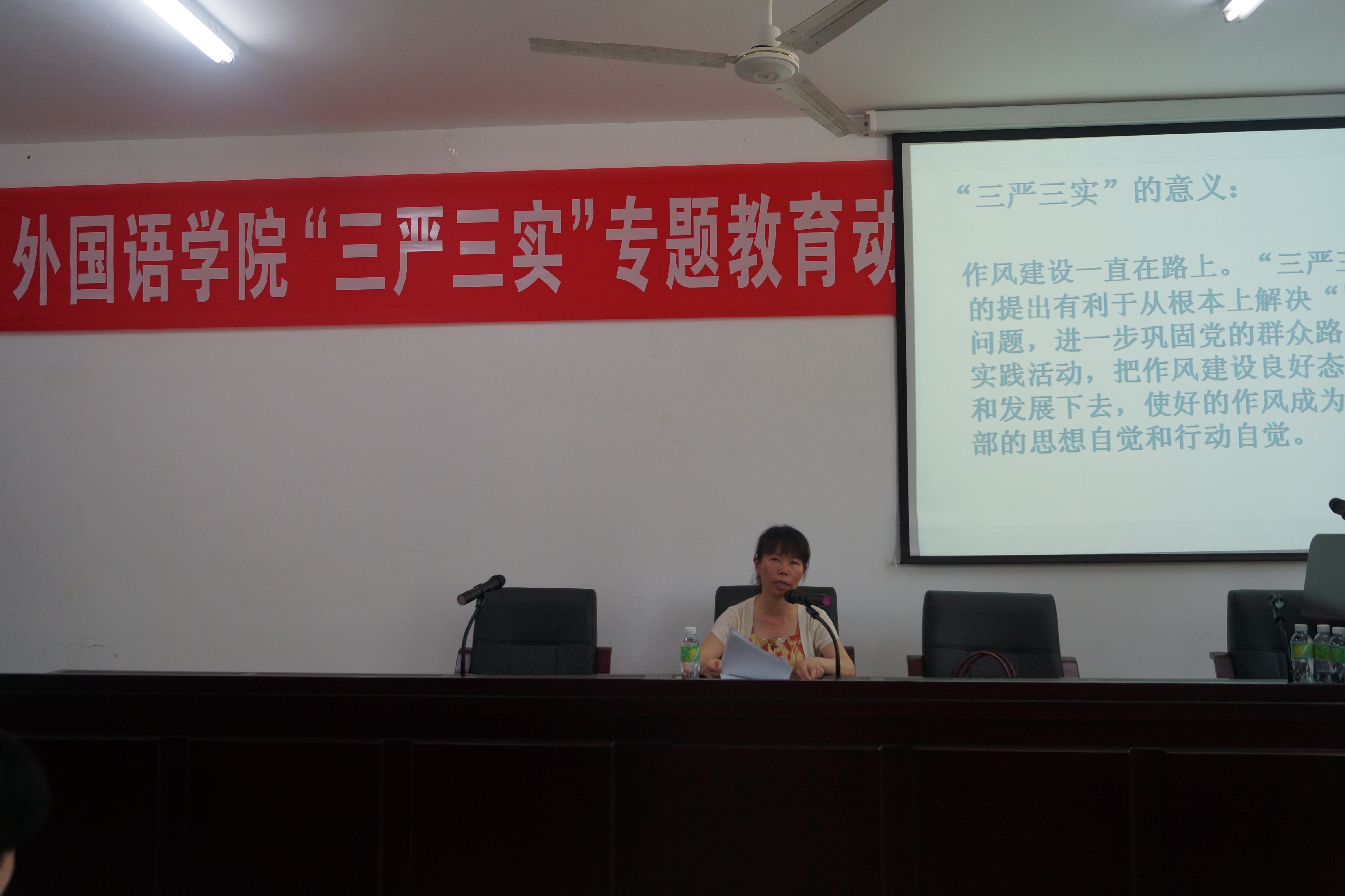 会上, 黄丽芹书记首先介绍了“三严三实”专题教育的背景,并详细阐述了“三严三实”的基本内涵和意义。她指出“三严三实”是共产党人“质”的规定性,“三严”是基础,是根本,集中体现了共产党人的理想信念和价值观。“三实”体现了党的思想路线,体现了理论联系实际的基本原则。“三严三实”是共产党人最基本的政治品格和做人准则,也是党员干部修身之本来、为政之道、成事之要。黄书记指出 “三严三实”的提出有利于从根本上解决“四风”问题,进一步巩固党的群众路线教育实践活动,把作风建设良好态势保持和发展下去,使好的作风成为党员干部的思想自觉和行动自觉。