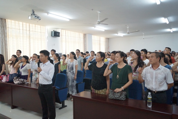 红色的七月,火红的党旗,值此建党九十四周年之际,为了庆祝中国共产党的生日,表彰先进,树立典型,引领广大党员牢记入党誓词,永葆党员先进性。2015年7月1日下午,必赢线路检测3003在社科楼C115隆重举行2015年“七一”表彰暨新党员入党宣誓大会。学院陈鸣芬院长、党委黄丽芹书记、金山副院长、彭晓华副院长以及全体教师、学生党员共计130人参加了大会,大会由学院团委书记李翠霞老师主持。