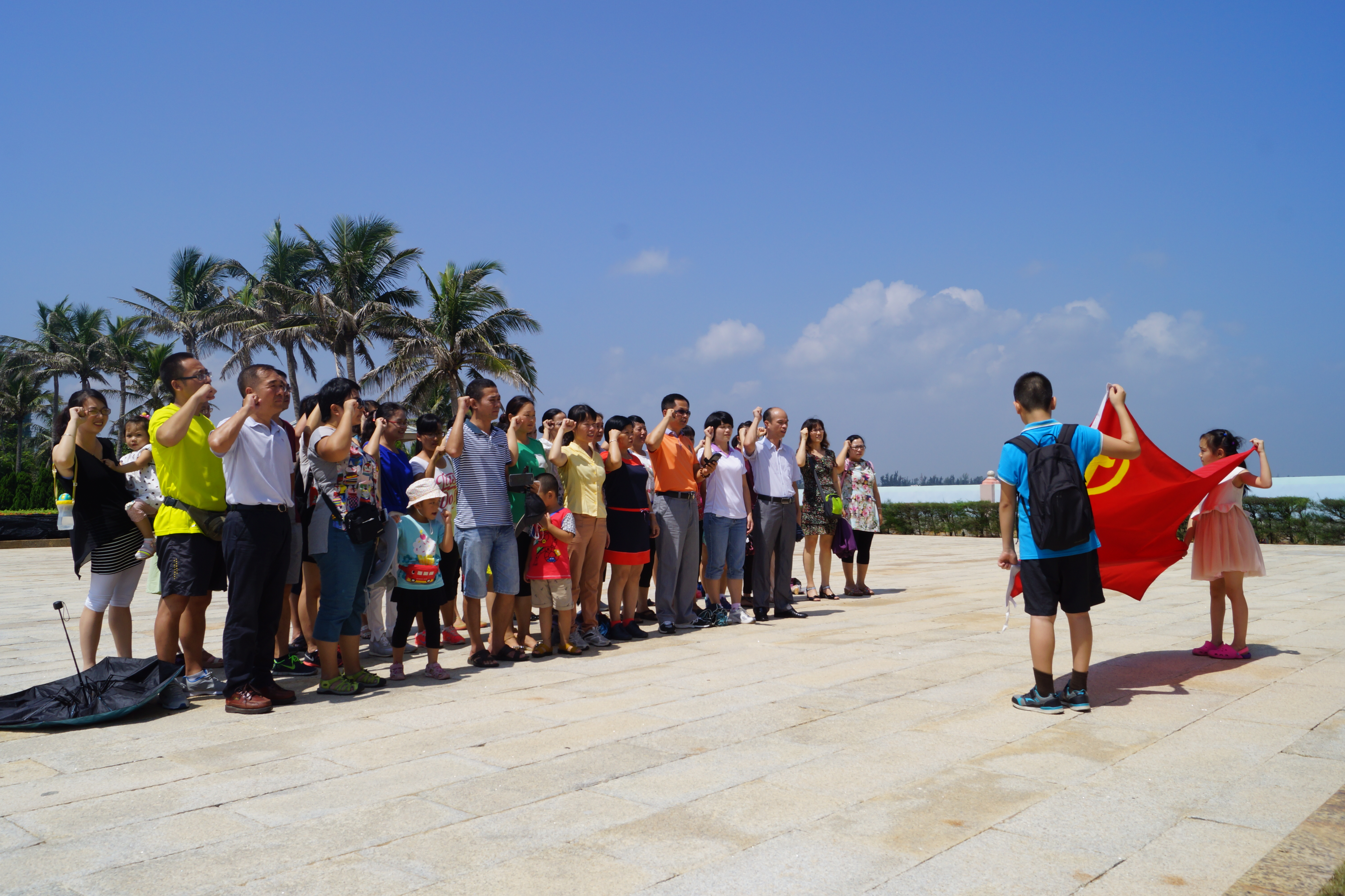 党员们到临高角解放公园,了解解放海南登陆战的历史,缅怀革命先烈;在纪念碑下面对党旗庄严宣誓、重温入党誓词。临高角解放公园位于海南临高县北部海滨,北临北部湾,与雷州半岛隔海相望,地处海口市和洋浦经济开发区之间,距县城11公里,是解放海南登陆战主要登陆点之一。1950年4月17日,中国人民解放军在临高角一线大举登陆,四十军6个团18700 多人在军长韩先楚、副军长解方的指挥下,冒着敌人的枪林弹雨,冲破了海峡封锁,越战壕,破铁网,炸碉堡,夺险隘,成功地摧毁了薛岳精心构造的海陆空立体防线,即“伯陵防线”,表现出了我军所向披靡、战无不胜的英雄气概。战斗中,四十军880多人英勇牺牲,四十军一一九师副师长黄长轩以身殉职,长眠于临高这片热土。革命先烈们以必胜的信念、用生命和热血换来了海南的解放与发展,筑就了我们的美丽家园,为人民的幸福生活奠定了基础。