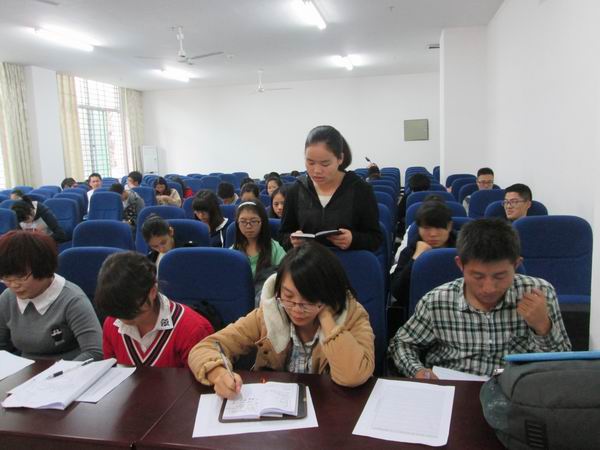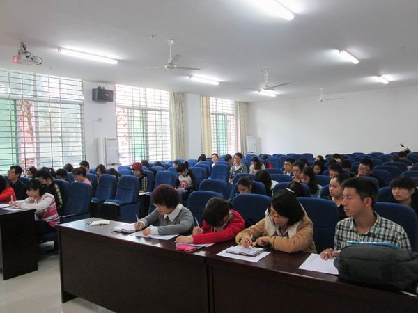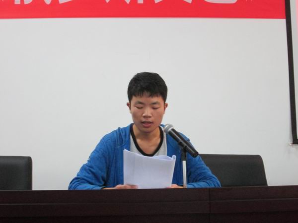 在李老师对大家的新年祝福下,大会拉开序幕。此次大会共分为四项议程:本学期工作的全面回顾和总结、对照本学期工作要点及完成情况具体分析、团委干部及团支书座谈交流和下学期重点工作的安排。首先团委副书记姚遥分别从思想引领、服务青年、团建工作、团务工作和工作不足等五个方面对本学期团委各部门的工作做了全面总结。在谈到思想引领这个大方面时,他回顾了十一月开展的“团日活动”,并一再强调了争做道德模范,帮助他人,服务社会的重要性。他表示在未来的工作里将继续响应“我的中国梦”的号召,并鼓励同学们为实现梦想超越自我,以实现中华民族伟大复兴梦为终生目标而奋斗。接着便是现场交流环节,干部们踊跃发言,既有对本学期工作不足之处的反思,也有对新一年的工作展望与建议,提出了许多对团工作有利的宝贵建议。